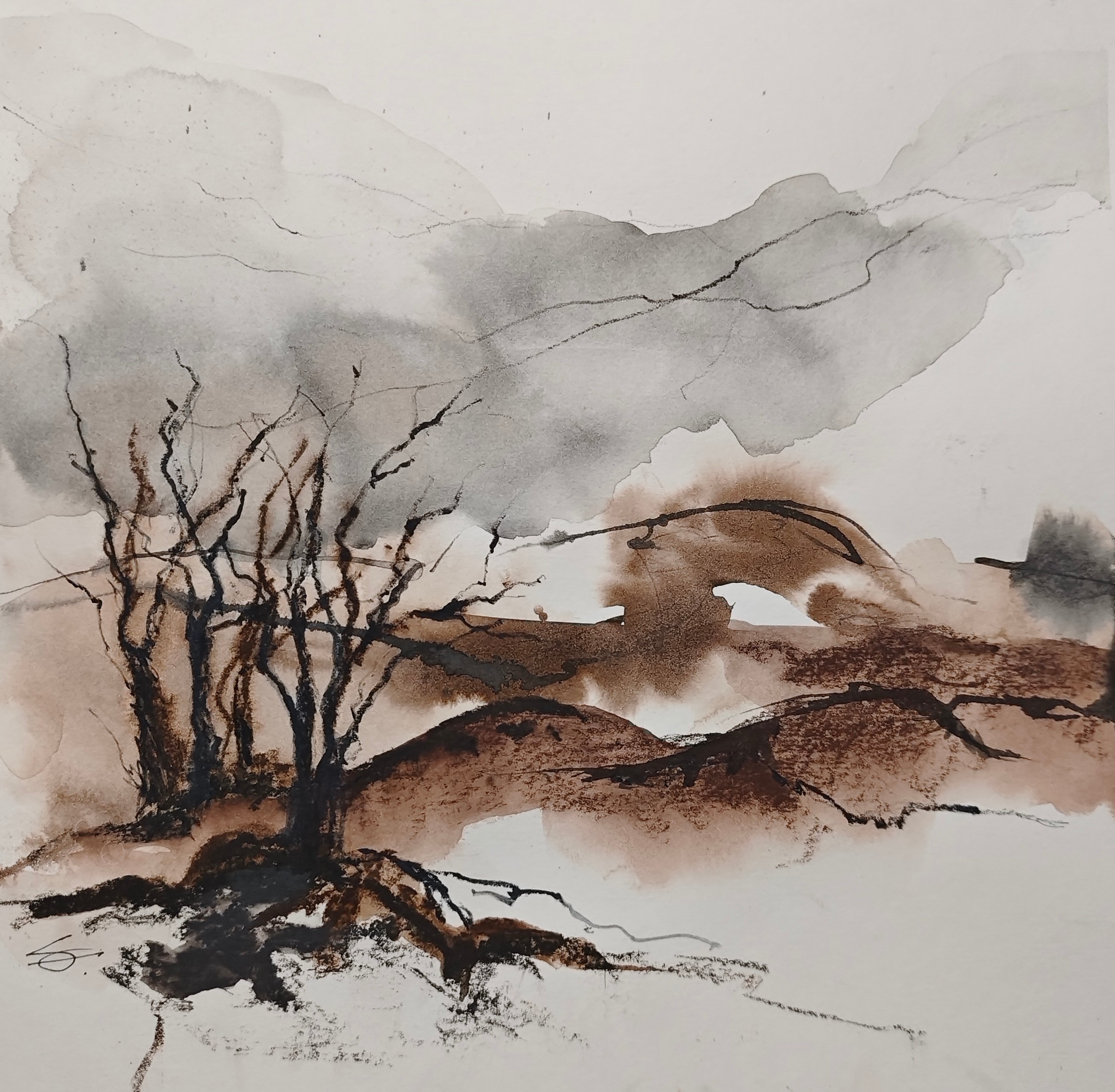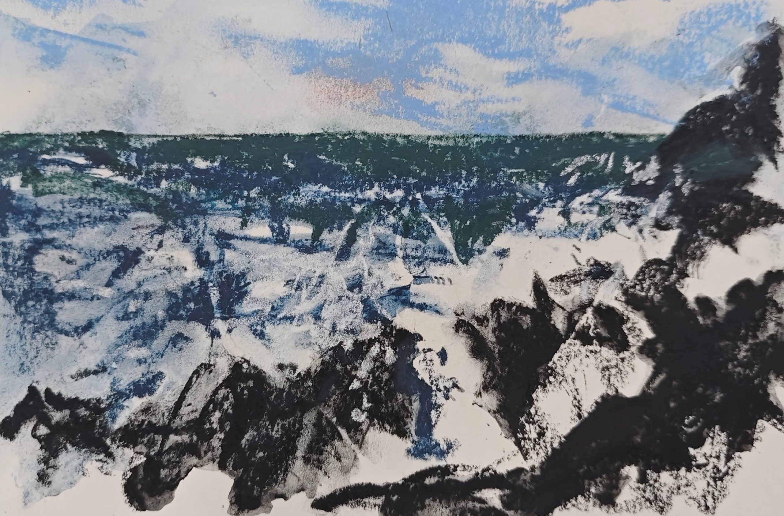 This appreciation has proved invaluable in my work, allowing me to quickly and freely express that which I feel from the landscape at an intuitive level, without having to think about what I am doing, resulting in loose abstract paintings.
