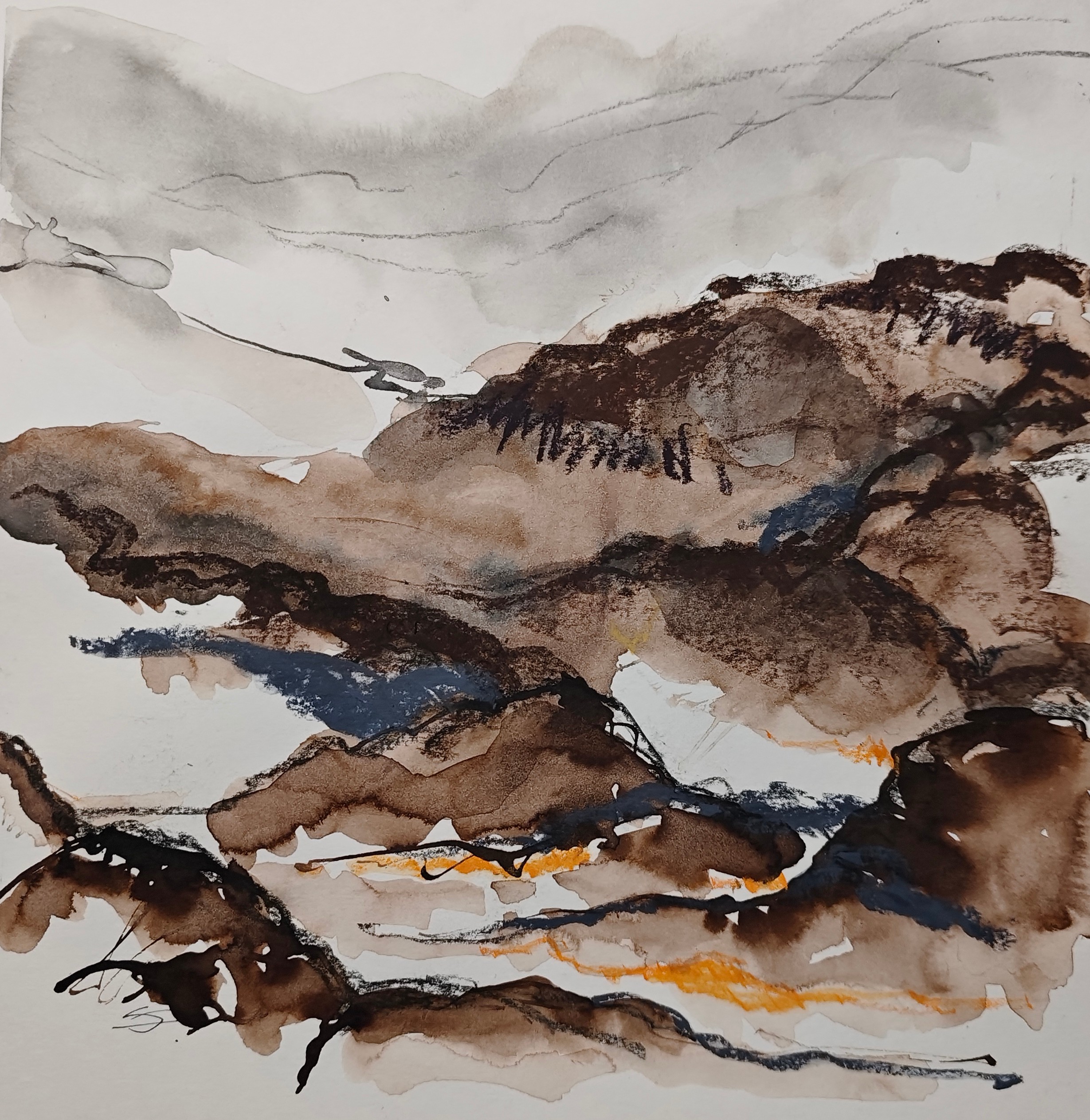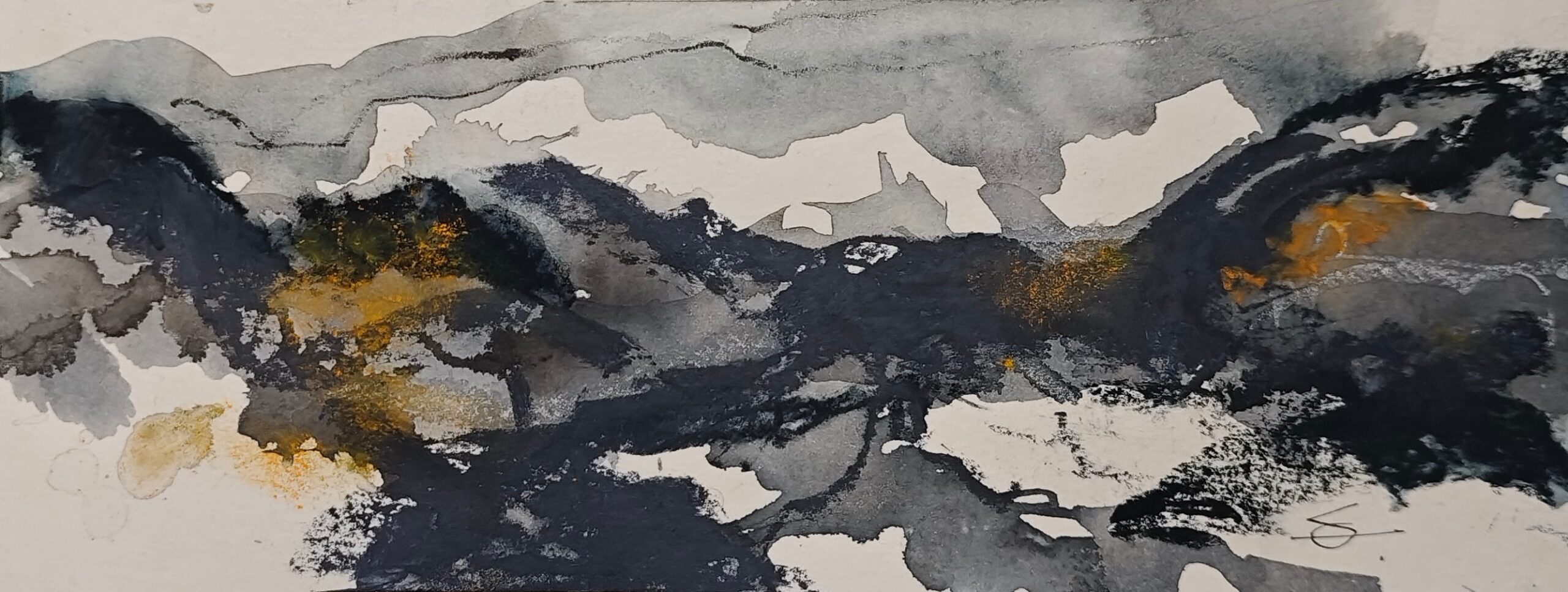 This series of paintings is an expression of the surrounding landscape – rugged coastline, wild waters and oft even wilder weather – it permeates my very being.